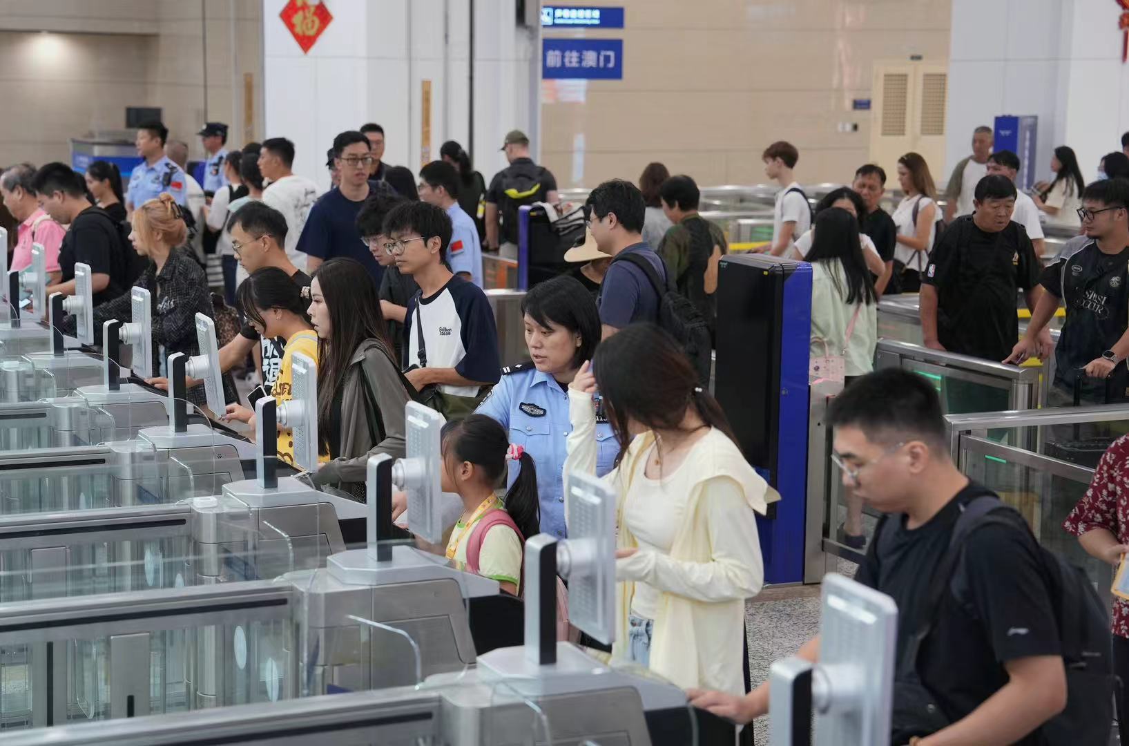 “今年国庆节与中秋节假期叠加,双节期间横琴口岸客流有望再创新高。为应对客流高峰,我们已在口岸外围、安检候检等区域实施控流措施,提前加派警力,开足开满通道,确保旅客始终有序通关。同时发挥粤澳警务联络机制,与澳门边检部门互通客流情况,协调疏导措施,有效提升横琴口岸客流、车流疏导效率。”横琴边检站执勤四队副队长丁同中提醒,广大出入境旅客出行前检查自己的证件和签注有效期限,错峰出行,顺利通关。